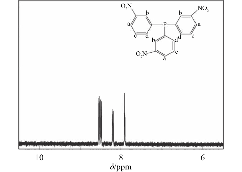 图2为NPPh3的核磁氢谱图:8.52~8.55 ppm(a),8.46~8.52 ppm(b),8.15~8.24 ppm(c),7.95~7.90 ppm(d)。从谱图中可知,质子吸收峰与NPPh3的结构相符合。