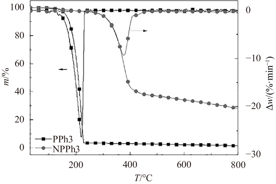 | 图3 PPh3和NPPh3的TG和DTG曲线 Fig. 3 TG and DTG curves of PPh3 and NPPh3 |