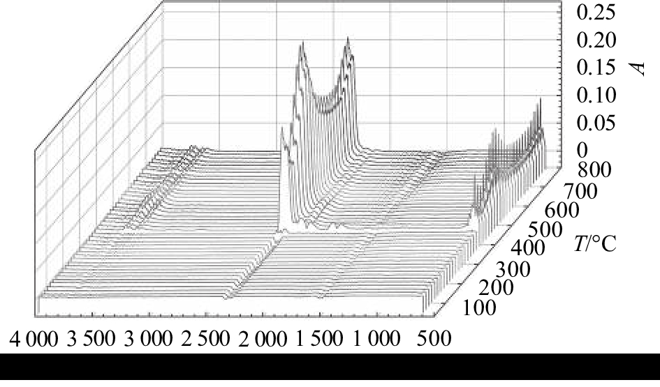 | 图5 NPPh3的气相产物红外3D图 Fig. 5 3D spectra of gas phase in the thermal degradation of NPPh3 |